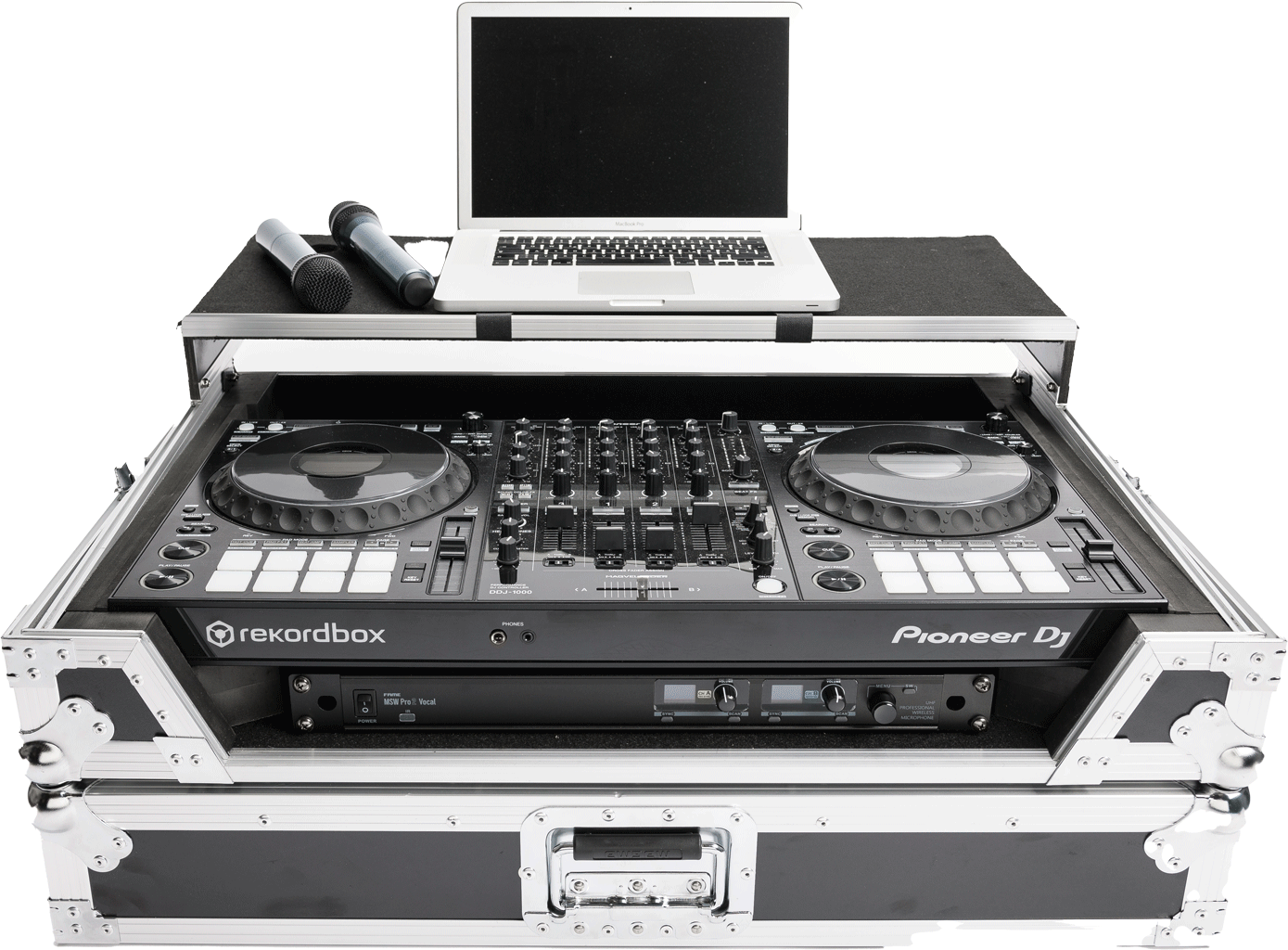 Besonders für mobile DJs bietet die Workstation zusätzliche Raffinessen, darunter 19“ Rackwinkel. Diese ermöglichen die Unterbringung von Geräten wie Funkmikrofonsystemen, Rackschubladen oder anderen 1-HE-Geräten direkt unterhalb des Controllers.